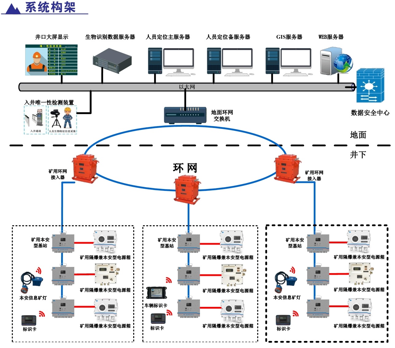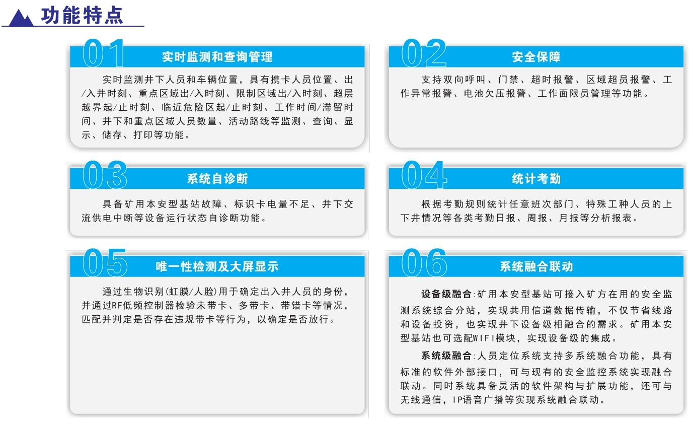 產(chǎn)品簡介:KJ2356J煤礦井下人員精確定位系統(tǒng),采用超寬帶無線(UWB)、慣性測量單元(IMU)、到達時差法(TODA)等多源融合定位方法,實現(xiàn)井下移動目標(biāo)定位精度小于0.3米的井下類GPS系統(tǒng)。該系統(tǒng)不僅強化了人員位置的精準(zhǔn)感知,實現(xiàn)煤礦井下作業(yè)人員位置的監(jiān)測管理、報警、各類數(shù)據(jù)查詢及報表功能。同時支持與車輛定位融合,將精準(zhǔn)定位技術(shù)應(yīng)用到井下機車、采掘裝備等各類設(shè)備。該系統(tǒng)具有定位精度高、抗干擾能力強,系統(tǒng)容量大、安裝使用簡便等特點,對煤礦高效生產(chǎn)和應(yīng)急教援具有十分重要的意義。該系統(tǒng)不僅強化了人員位置的精準(zhǔn)感知,實現(xiàn)煤礦并下作業(yè)人員位置的監(jiān)測管理、報警、各類數(shù)據(jù)查詢及報表功能。同時支持與車輛定位融合,將精準(zhǔn)定位技術(shù)應(yīng)用到井下機車、采掘裝備等各類設(shè)備。